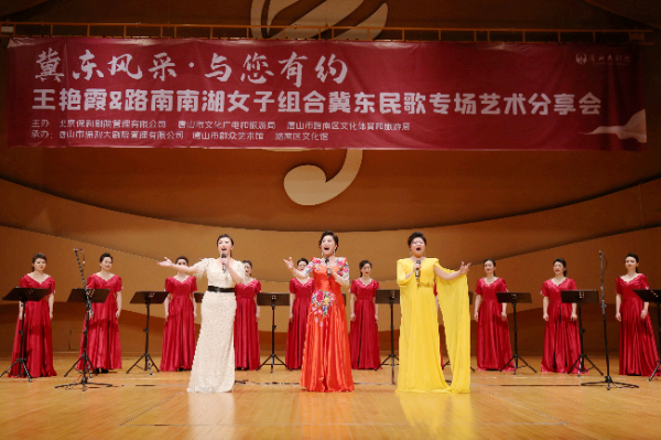 1月17日晚,“冀東風采與您有約”——王艷霞&南湖女子組合冀東民歌專場藝術分享會在唐山保利大劇院音樂廳精彩舉辦,農工黨唐山市文體支委會主委王艷霞攜手南湖女子組合為廣大音樂愛好者送上了一場特色鮮明、雅趣盎然的民歌音樂盛宴,現場400余名觀眾觀看演出。