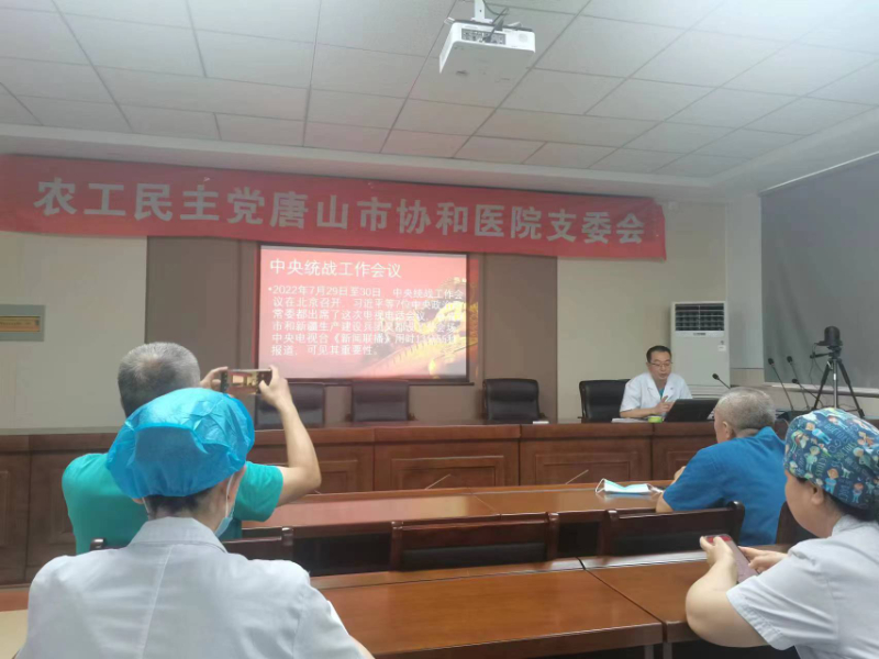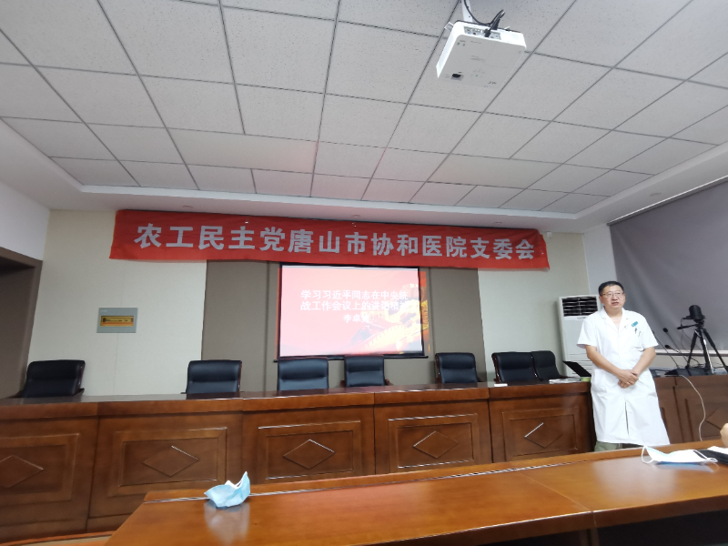 8月4日下午,農工黨唐山市協和醫院支委會召開全體黨員會議專題學習中央統戰工作會議精神。市委會副主委、支委會主委李翔宇主持會議并講話。