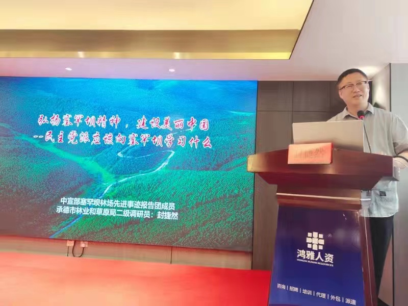 培訓期間,“塞罕壩精神特色黨性教育項目”主講人、《塞罕壩之魂》作者、承德市林業和草原局二級調研員封捷然為學員們帶來了一場題為《弘揚塞罕壩精神,建設美麗中國——民主黨派應該向塞罕壩學什么》的精彩講座,他圍繞“塞罕壩精神的形成”“塞罕壩精神的科學內涵”“塞罕壩精神的時代價值”三個部分,科學提煉出“牢記使命是塞罕壩精神的靈魂”“艱苦創業是塞罕壩精神的核心”“綠色發展是塞罕壩精神的不懈追求”,傾情講述了塞罕壩人艱苦創業的感人事跡,既有思想深度,又有實踐厚度,激勵廣大民主黨派成員牢記初心使命,敢于擔當,勇于奉獻,為全面建成社會主義現代化強國、實現中華民族偉大復興繼續奮斗。