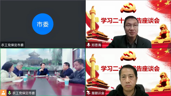習近平總書記對要完善大統戰工作格局,要加強同民主黨派和無黨派人士的團結合作等提出了明確要求,為民主黨派工作開展提供了根本遵循,指明了前進方向,振奮人心、催人奮進。作為中國共產黨領導的多黨合作事業的參與者、實踐者和推動者,農工黨保定市委將堅持以習近平新時代中國特色社會主義思想為指引,迅速掀起深入學習中共二十大精神的熱潮,把全市農工黨黨員的思想、認識和行動切實統一到中共中央的重大決策部署上來,賡續紅色血脈,匯聚奮進力量。始終與中國共產黨通力合作、一路同行,堅定理想信念、加強自身建設,凝聚廣泛共識,參政履職報國,以實際行動為中國式現代化貢獻農工黨力量!
