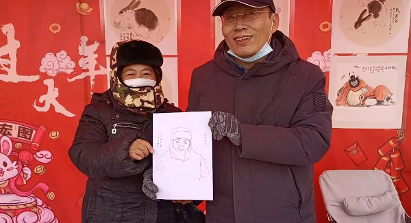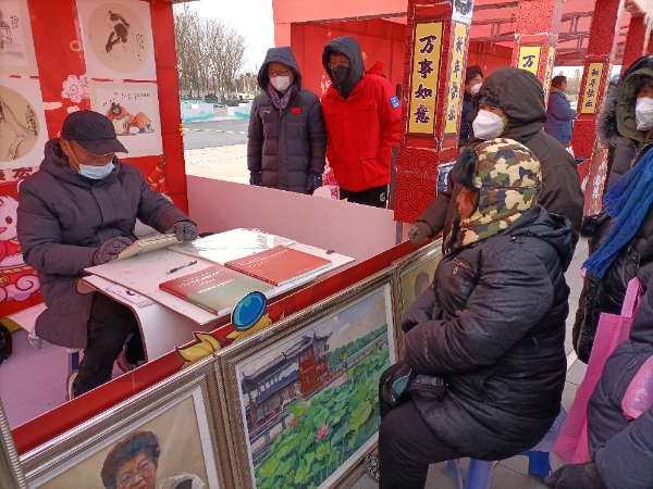 “小年”是整個春節慶祝活動的開端,自“小年”起,春節的年味將越來越濃郁,節日的氛圍越來越熱烈。開平區支部連續多年在“小年”前后,組織黨員到基層社區開展春節慰問志愿服務活動。今年支部將活動地點選在唐山花海,以實際行動助力唐山花海“后園博時代”建設。活動現場,馬群、孫正鶴等黨員精選畫作布置春節微畫展供群眾欣賞,豐富節日文化生活,展現農工黨黨員同心奮進新征程、聚力建功新時代的精神風貌;義務為群眾創作肖像畫,用丹青傳韻送祝福,增添節日喜慶氣氛,活動得到現場群眾的熱烈歡迎。