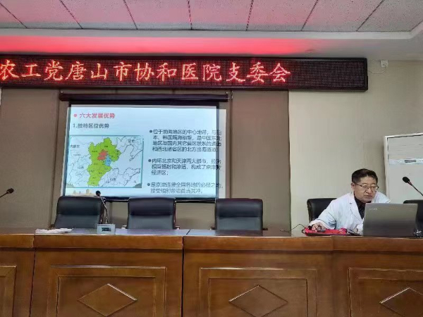 2月16日下午,農工黨唐山市協和醫院支委會組織黨員深入學習唐山市第十六屆人民代表大會第四次會議和政協唐山市第十三屆委員會第三次會議精神。農工黨唐山市委副主委、協和醫院支委會主委李翔宇主持學習并講話。