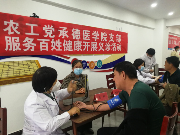 2023年3月21日,農工黨承德市委會承德醫學院支部黨員為助力承德市醫療健康志愿服務活動,在雙峰寺社區開展了“服務百姓健康”義診活動。農工黨承德市委會承德醫學院支部副主委李葵花、支部副主任燕志衛和部分黨員參加活動。
