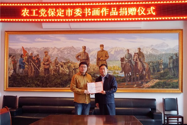趙濤表示,為紀念中共中央發(fā)布“五一口號”75周年,農工黨保定書畫院創(chuàng)作了大幅繪畫作品《同心》,希望通過此次捐贈,回顧農工黨同中國共產黨團結合作的光輝歷程,傳承發(fā)揚“五一口號”凝聚的優(yōu)良傳統(tǒng),為推動新時代統(tǒng)一戰(zhàn)線和多黨合作事業(yè)長遠發(fā)展貢獻農工黨的一份力量。