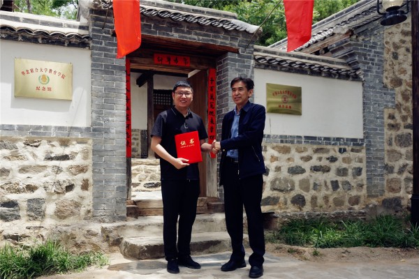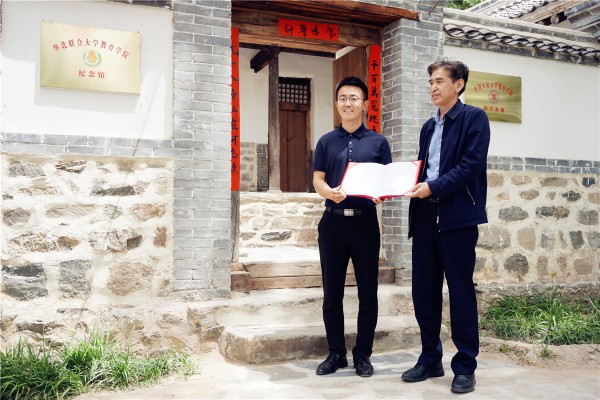 下午,金星與阜平縣教育局黨組書記、局長周邦紅,中國人民大學教育學院教師在教師研討室開展題為“傳承紅色基因 建設教育新路”聯學活動,并在華北聯合大學教育學院紀念館大門口合影留念。