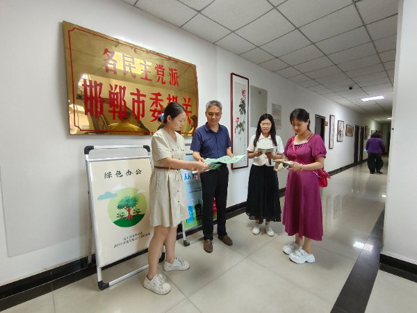 6月8日,農工黨邯鄲市委開展“2023年環境與健康宣傳周”系列活動,持續推進生態文明建設進機關、進學校、進社區 。農工黨員代表在民主黨派市委機關開展 “垃圾分類,從我做起”“低碳環保,綠色辦公” 主題宣傳活動,推動低碳環保理念進機關,樹立機關工作者 “綠色辦公” 環保理念;農工黨員代表來到邯鄲市市委機關幼兒園,通過環境與健康知識宣講、宣傳資料發放等形式,向學生家長、幼兒園老師宣傳環境保護和垃圾分類的重要性,動員家長、老師從自我做起,從身邊小事做起,傳遞健康、綠色、環保的生活理念;農工黨員代表在民主黨派機關所在社區向來往群眾發放環保宣傳資料,講解垃圾分類重要意義,鼓勵社區居民低碳生活、綠色消費,樹立人與環境和諧共生環保理念,讓綠色生活從每一人做起,從每一個生活習慣開始。農工黨邯鄲市委將在世界環境日所在周持續開展“環境與健康宣傳周”系列活動 ,凝聚起社會大眾對人民健康和生態環境的廣泛關注與行動自覺。