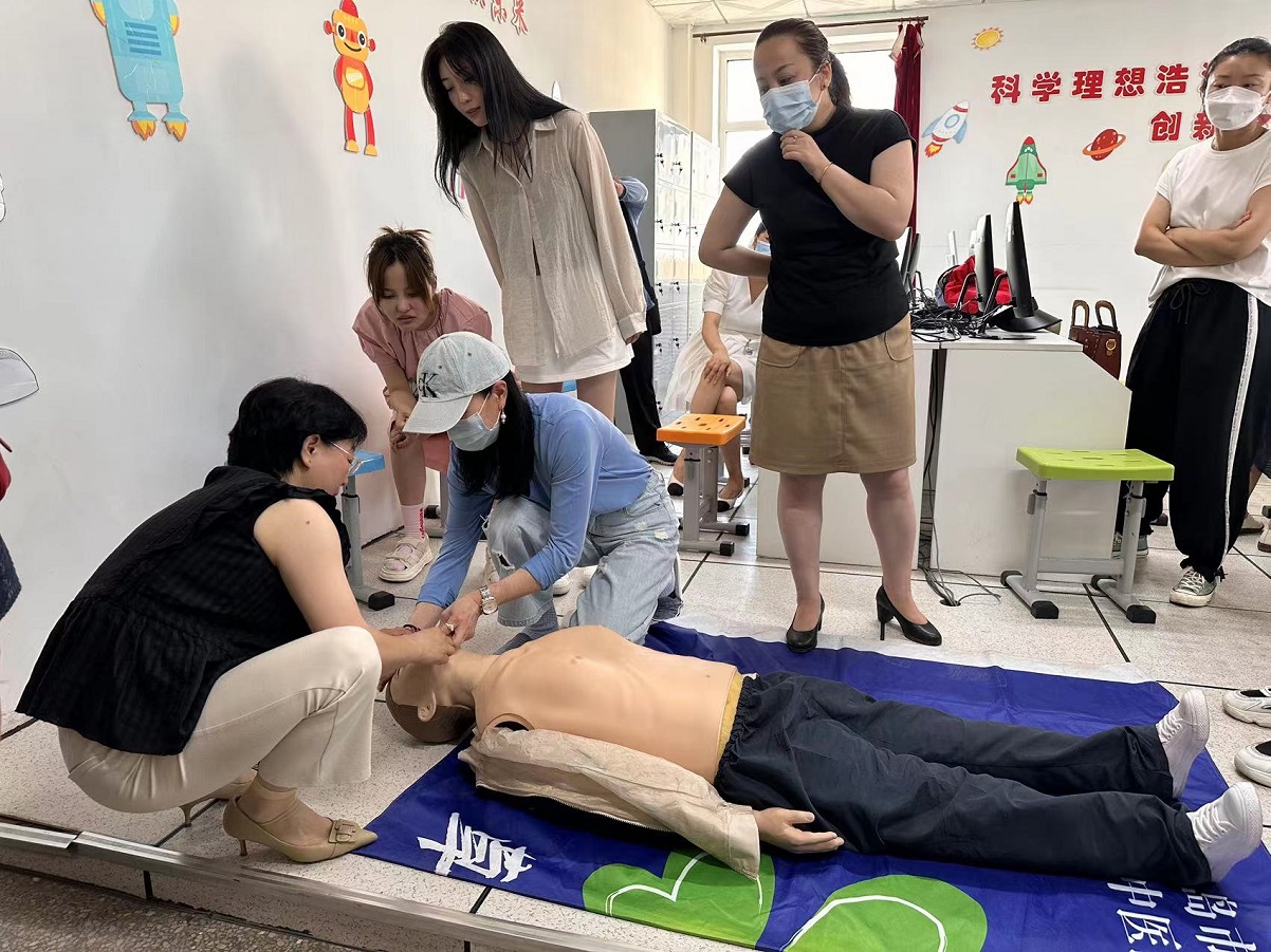 王艷輝用生動形象的語言和假人的現場模擬講解了心肺復蘇的相關知識,課堂互動氣氛十分活躍。