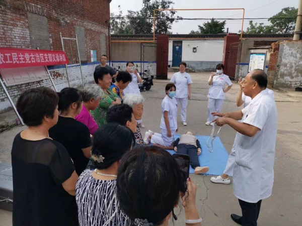 “雙手交疊,以髖關(guān)節(jié)為支點、挺直腰部,雙臂伸直,垂直向下按壓30次......”8月3日,在古冶區(qū)習(xí)家套鄉(xiāng)任家套村的黨群活動中心大院內(nèi),農(nóng)工黨黨員、唐山市第三醫(yī)院心內(nèi)科副主任唐瑞雙正在為當?shù)卮迕裰v解心肺復(fù)蘇術(shù)的要領(lǐng),一旁的醫(yī)護人員借助“模擬人”配合唐主任的講解,逐步進行心肺復(fù)蘇搶救演示。