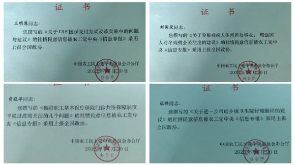 近日,從農工黨河北省委獲悉,農工黨唐山市委專職副主委賈敬蘋,黨員蘆閱文、劉國榮、王明慧、張靜撰寫的《推進職工基本醫療保險門診共濟保障制度平穩過渡需關注的幾個問題》《關于由教材插圖丑化問題引發的“文化糾偏”要正確化、精準化、合理化的建議》《關于DIP醫保支付方式改革實施中的問題與建議》等十篇社情民意信息被農工黨中央《信息專報》采用,并上報全國政協。