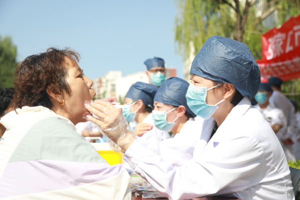 為進(jìn)一步開展好“凝心鑄魂強(qiáng)根基、團(tuán)結(jié)奮進(jìn)新征程”主題教育活動(dòng),在第35個(gè)全國愛牙日來臨之際,9月12日,農(nóng)工黨橋西區(qū)市屬區(qū)屬醫(yī)院支部張丹、盧欣兩位黨員帶領(lǐng)科室青年醫(yī)師到金鼎社區(qū)為老年人進(jìn)行口腔健康檢查。