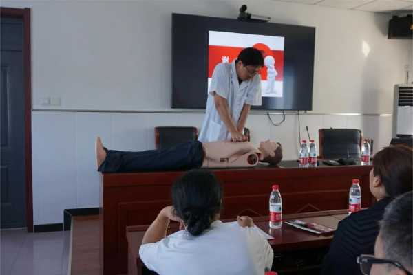 保定市第一中心醫(yī)院急診科副主任醫(yī)師梁青為大家講解心肺復(fù)蘇急救知識和操作要點并進行操作演示。