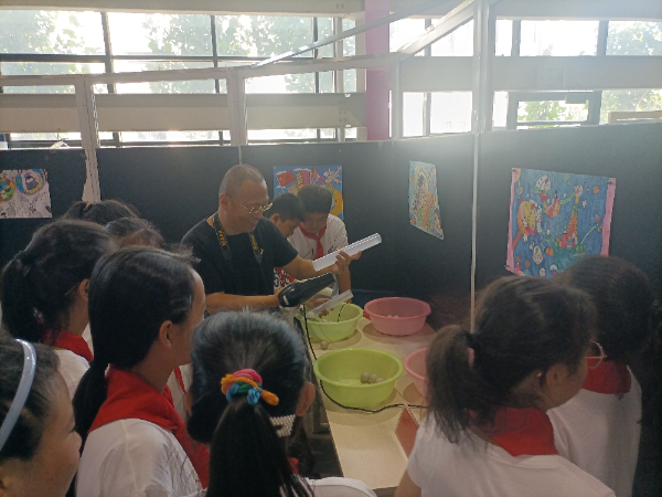 9月20日上午,在開平區2023年全國科普日青少年科技體驗活動現場,農工黨唐山市開平區支部主任馬群正在為參加體驗的孩子們詳細講解空氣炮的產生原理。