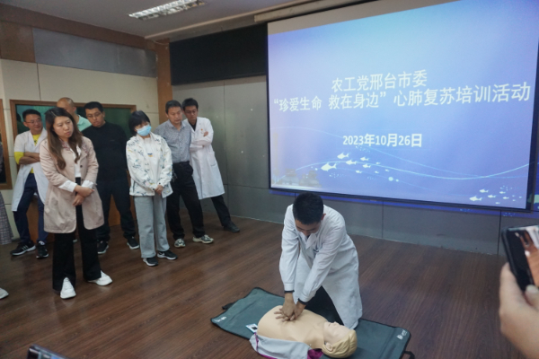 10月26日,農(nóng)工黨邢臺(tái)市委會(huì)到邢臺(tái)市中心血站舉辦“珍愛(ài)生命 救在身邊”心肺復(fù)蘇培訓(xùn)活動(dòng)。農(nóng)工黨黨員、邢臺(tái)市人民醫(yī)院呼吸與危重醫(yī)學(xué)科主任王志華授課,農(nóng)工黨邢臺(tái)市委會(huì)二級(jí)調(diào)研員郭愛(ài)華出席培訓(xùn),邢臺(tái)市中心血站80余名職工參加培訓(xùn)。