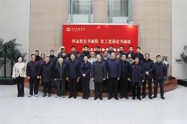 癸卯冬月,瑞雪呈祥。12月20日,河金校友書畫院、農工黨保定書畫院“慶元旦迎新春書畫筆會”活動在河北金融學院圖書館二樓舉行。河北金融學院黨委書記楊兆廷,校長、農工黨保定市委會主委楊偉坤,黨委副書記姚維剛,黨委常委、紀委書記聶會文,河金校友書畫院顧問、原紀委書記張紹紅,農工黨保定市委會專職副主委趙濤,河金校友書畫院院長劉長海出席活動。活動由人文藝術教育教學部黨總支書記田鈺瑩主持。