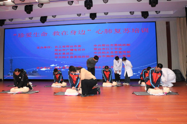 1月16日,農工黨邢臺市委會聯合市委統戰部、邢臺市紅十字會、邢臺廣播電視臺、邢臺市胸痛中心聯盟、柏鄉縣政協、柏鄉縣宣傳部、柏鄉縣統戰部到柏鄉鎮中學,舉辦“珍愛生命 救在身邊”心肺復蘇培訓活動。邢臺市政協副主席、農工黨市委會主委、市人民醫院副院長魏慶民,農工黨市委會二級調研員郭愛華出席培訓。