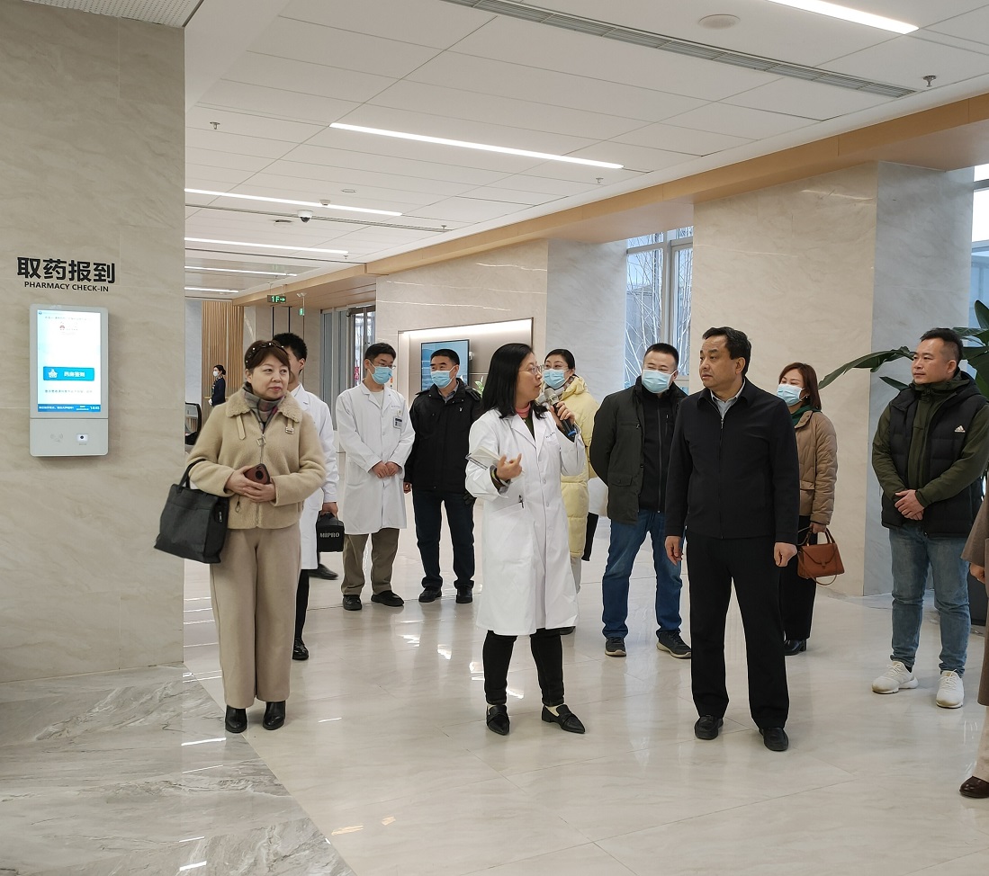 調研組一行先后來到醫院藥房、影像診斷科、門診、內科病房、地下質子放療中心等處實地考察,查看了廊坊院區各項目板塊的區位布局及附屬配套設施的建設情況,對院區試運行中所涉及到的病患就醫、技術引進、管理模式等工作情況進行了詳細了解。