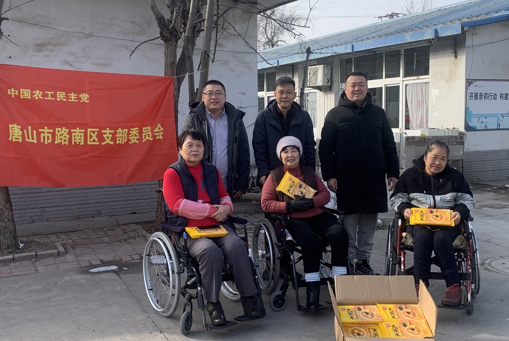 2月23日,元宵節前夕,農工黨唐山市路南區支委會主委楊小明率領黨員代表來到唐山市康復村慰問地震截癱傷員,送去了元宵等慰問品,與村民們共慶元宵佳節。