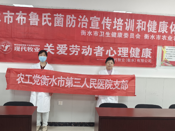 為進一步做好布魯氏菌病(簡稱布病)防控工作,提高畜牧業養殖人員的防護意識和防護能力。4月24日,農工黨衡水市三院支部組織黨員赴武強縣蒙牛牧場開展布病防治知識宣傳活動。