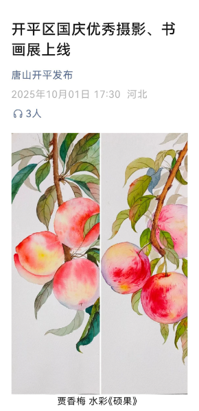 展覽中,多位農工黨黨員的佳作精彩亮相。開平區支委會主委馬群的國畫《共繪錦章》,以筆墨寄情,勾勒時代發展的壯闊圖景;黨員張紅武的國畫《好山河》,用蒼勁筆觸定格祖國山河的雄奇壯麗;黨員賈香梅的水彩畫《碩果》,以斑斕色彩描繪生活的豐碩與美好。