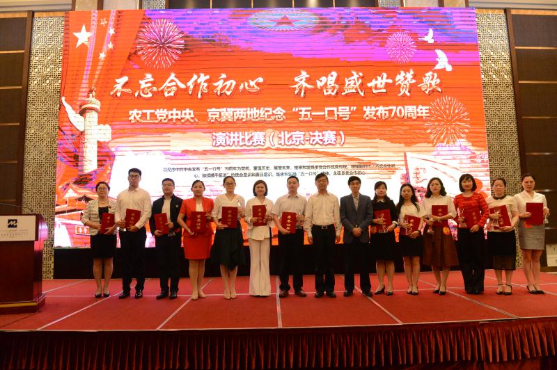 5月22日,京冀兩地紀念“五一口號”發布70周年演講決賽在北京舉行。經過在滄州演講比賽初賽的角逐,最終來自農工黨中央婦委會、農工黨北京市委、農工黨北京大興區工委和滄州市的一共13名農工黨成員圍繞“五一口號”發布和“不忘合作初心,齊唱盛世贊歌”的主題進行了精彩演講。