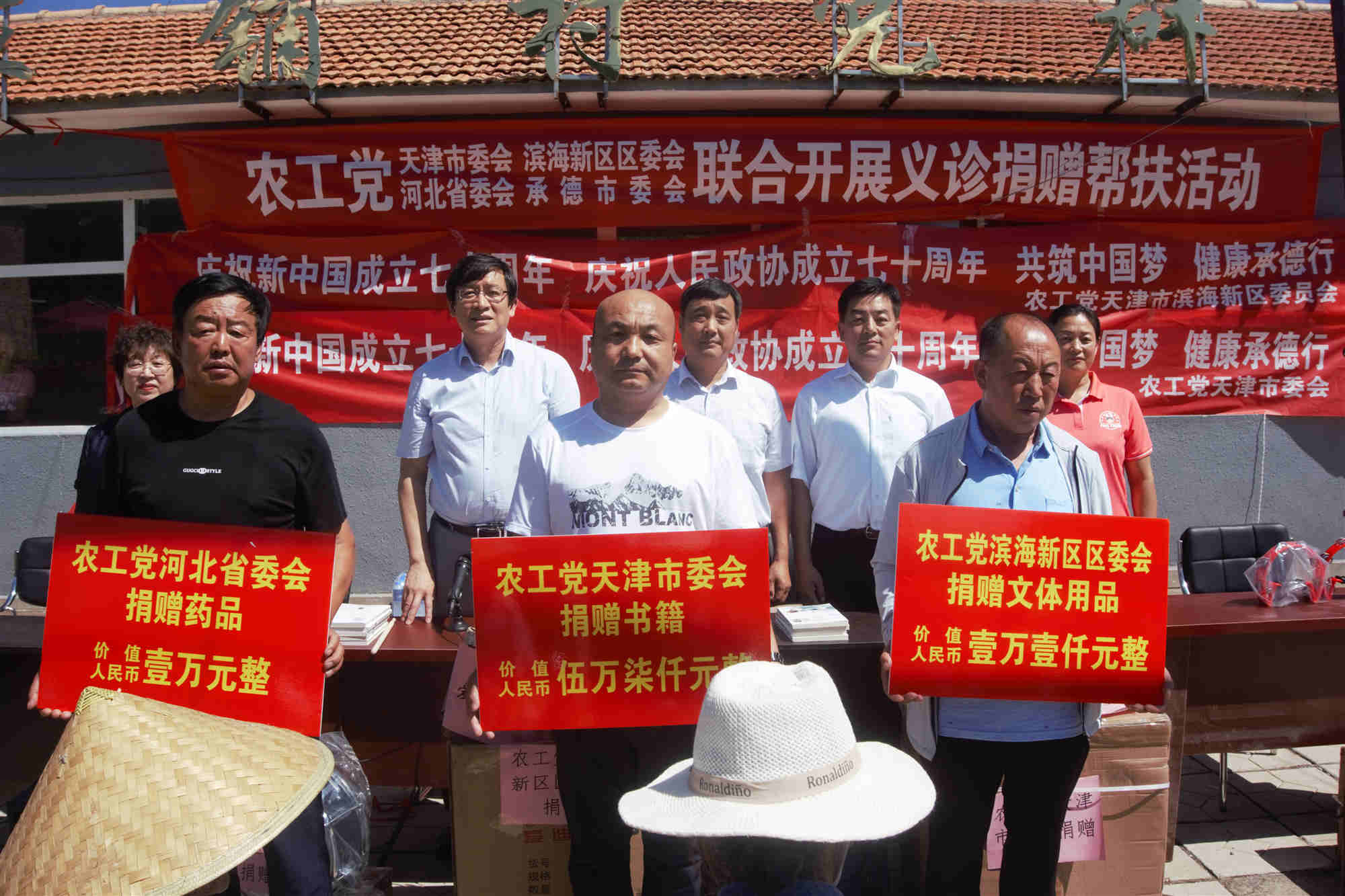 8月8日,農(nóng)工黨河北省委、天津市委、承德市委、天津?yàn)I海新區(qū)區(qū)委聯(lián)合到承德市隆化縣西阿超鄉(xiāng)楊家鋪村開展義診捐贈(zèng)幫扶活動(dòng)。農(nóng)工黨河北省委專職副主委經(jīng)順波出席活動(dòng)并講話,承德市政協(xié)副主席、農(nóng)工黨市委主委郭靖濤主持活動(dòng)儀式,農(nóng)工黨天津?yàn)I海新區(qū)區(qū)委專職副主委高貴玲、農(nóng)工黨承德市委專職副主委谷雪芬、承德隆化縣政協(xié)副主席代海紅參加活動(dòng)。