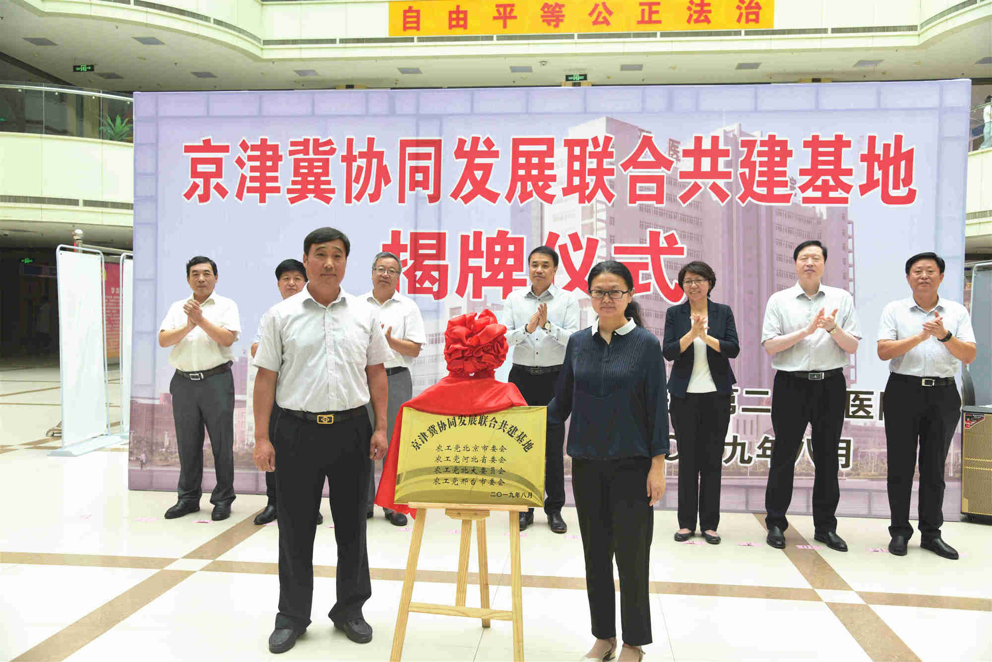 8月13日,農工黨北京市委會、河北省委會、邢臺市委會、北大委員會在邢臺市醫專第二附屬醫院聯合舉行京津冀協同發展聯合共建基地揭牌儀式。農工黨中央常委、北京大學委員會主委、北京大學首鋼醫院院長顧晉,農工黨河北省委副主委經順波出席儀式并講話。農工黨北京市委副主委李亞蘭、中共邢臺市委常委、統戰部長郝艷紅,邢臺市人大副主任、農工黨市委主委周世偉,中共邢臺市委統戰部常務副部長宋華章、中共邢臺市委統戰部副調研員王彥峰、農工黨邢臺市委副主委郭愛華以及邢臺市衛健委、邢臺醫專第二附屬醫院等相關領導出席活動。