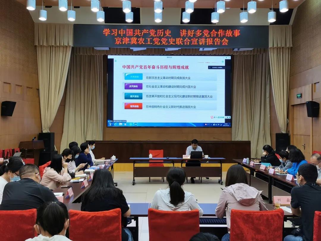 此次聯(lián)合宣講,是在京津冀協(xié)同發(fā)展背景下,三地農工黨組織精心策劃,共同組織的一次黨史學習教育活動,既是京津冀農工黨組織開展合作共建的一項重要內容,也是通過“大宣傳、大教育”強化政治引領、思想引導和共識教育的一次嘗試和探索。京津冀三地分別設置會場,線上線下同時進行。