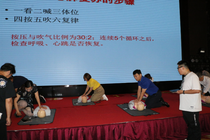 啟動儀式后,開展了首場“珍愛生命 救在身邊”培訓活動。邢臺市心內專家賈興澤主任詳細講解了心肺復蘇急救知識和操作要點,參訓成員積極踴躍分組開展心肺復蘇急救技能操作演練,培訓取得良好效果。