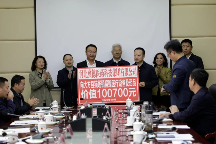 座談會上,河北冀德醫(yī)藥科技集團有限公司向大方縣貓場鎮(zhèn)捐贈價值10萬余元的醫(yī)療設備及藥品。
