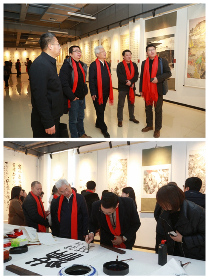 開幕式后,王寶山和書畫家代表參觀了書畫作品展,出席活動的書畫家現場進行了創(chuàng)作和交流、現場寫春聯和福字。