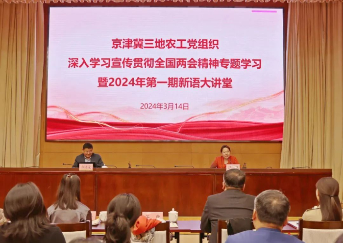 3月14日,農工黨中央區域協同發展工作委員會,以及農工黨北京市委、天津市委會、河北省委會聯合舉辦專題學習會議,深入學習宣傳貫徹全國兩會精神。本次會議以線上線下相結合的形式進行,北京設主會場,天津、河北等地設分會場。